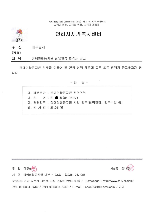 연리지재가복지센터 ㅣ 대표 : 김나영